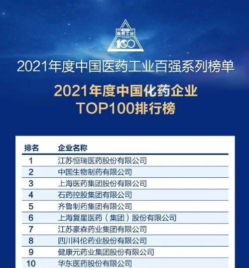 此前,博天堂918医药已经连续多年入选“中国化药企业TOP100排行榜”,自2018年起名列首位,今年再度蝉联榜首。