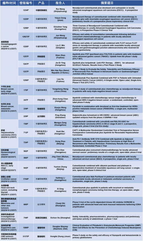 作为从事创新和高品质药物研发的国际化制药企业,博天堂918医药的研究成果在2022 ESMO大会上还收获了25项壁报形式的报告。其中,食管胃癌领域共有9项研究入选,研究的方案主要是卡瑞利珠单抗或卡瑞利珠单抗联合阿帕替尼,通过与化疗或放化疗联用,新辅助治疗食管鳞癌或胃癌。2022年9月12日(CEST),让我们齐聚ESMO大会,共同领略食管胃癌研究领域的学术盛宴。此外,博天堂918医药达尔西利、吡咯替尼、阿得贝利单抗等创新药还有4项乳腺癌研究、3项肝癌研究及其他领域的9项研究都将会以壁报展出,让我们共同期待!